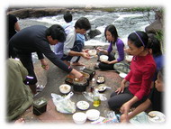 คำตอบที่ 9 เล่นน้ำเล่นท่ากันจนสบายตัวแล้ว ก็ต้องบริโภคกันหน่อย ไม่มีอะไรมาก แกงไตปลา,ไข่ลูกเขย,ชิ้นปิ้ง,ต้มยำปาป๋อง,น้ำพริกนรกกะแตงกวา เล่นเอาเหงื่อซึม http://www.outdooreasy.com