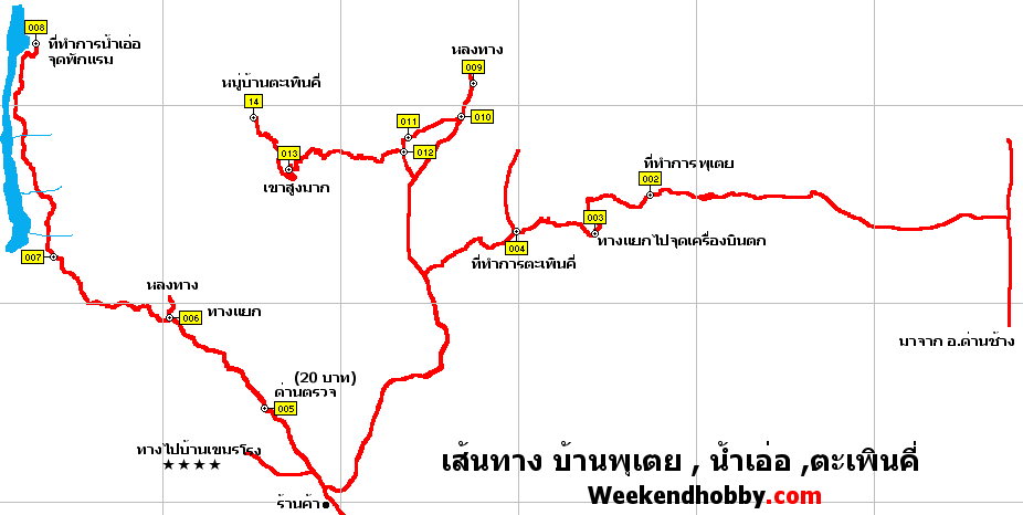 3. เส้นทางไปน้ำเอ่อ (จากร้านค้าตามแผนที่ GPS) จะเป็นทางลูกรังและหินล้วน ๆ แต่วิวจะเป็นป่าและน้ำ ซึ่งสวยและอากาศเย็นสบายดี ไม่หนาวมาก สามารถพักค้างแรมที่หน่วยพิทักษ์ ไกรเกรียงได้ มีห้องน้ำและบ้านพัก ส่วนหาดเล่นน้ำจะไม่ค่อยดีเท่าไร่ จะเป็นหล่ม และดินโคลนเป็นส่วนใหญ่ครับ เทศกาลน่าจะมีนักท่องเที่ยวไปกันมากพอสมควรครับ มีลานกางเต้นท์ ติด ๆ กันจะเป็นหน่วยควบคุมไฟป่าฯ สามารถที่จะปลีกวิเวกกลางเต้นท์ได้ (ตีซี้กับเจ้าหน้าที่นะครับ)