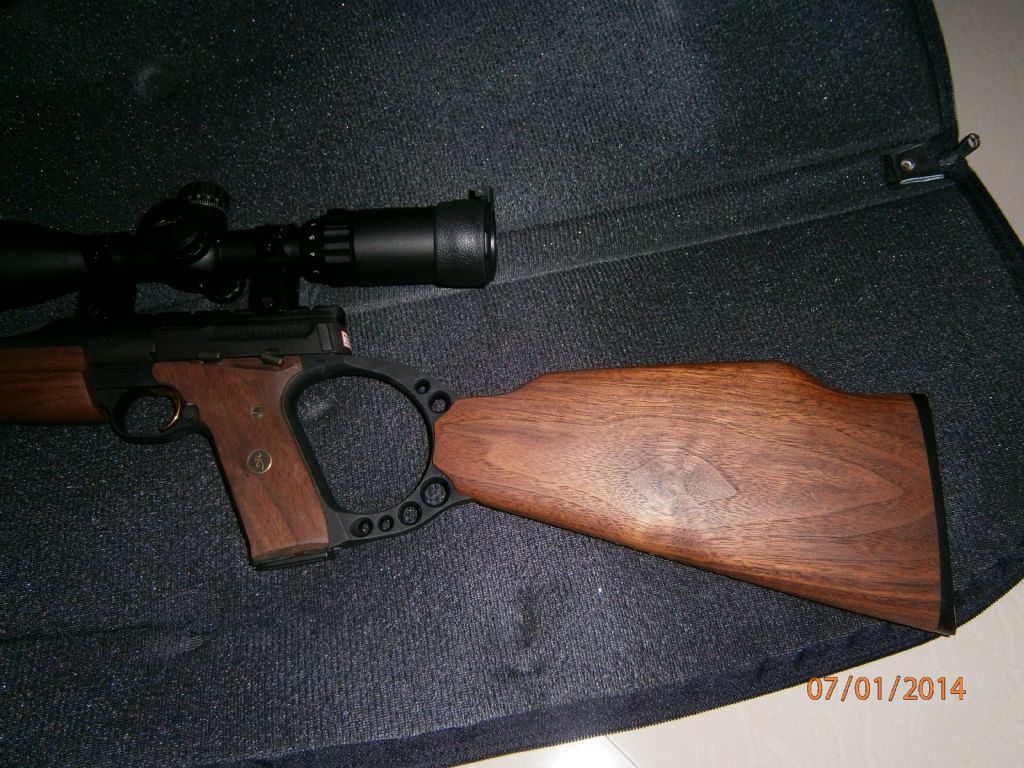 ในแคตตาล๊อก เรียกรุ่นนี้ว่าไรเฟิล(browning_buckmark_rifle) ผมไม่เคยเห็นตัวเป็นๆ แต่คงใช่ เพราะเอาศูนย์หลังไปพะไว้บนลำกล้องหน้ารังเพลิง ถ้าเอาไว้ข้างหลังคบประทับไหล่ยิงไม่ได้ และถ้าถอดพานท้ายออกยิงแบบปืนสั้น คงมองไม่เห็นบากศูนย์หลัง ต้องติดกล้อง