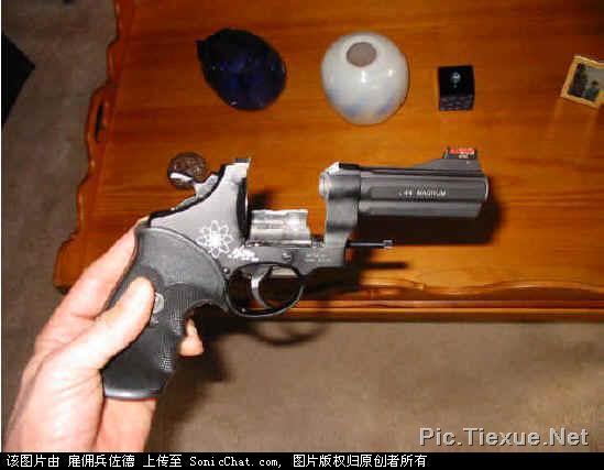 3. ปืนสมิธฯโม่แตกนี่เห็นมาก่อน รุ่นนี้น่าจะเป็นพวกสแกนเดียมที่มีน้ำหนักเบา ดูรูปแล้วน่าจะเกิดจากการโหลดกระสุนแรงเกินพิกัด(เอาใจสมิธฯหน่อย)