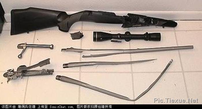 2. อันนี้แปลกที่สุด ไม่เคยเห็นสภาพนี้มาก่อน ปืนสปริงฟิวส์ ได้ข่าวว่าเนื้อเหล็กเปราะ ไม่รู้ภาพนี้จะเป็นการยืนยันหรือเปล่า หักมาทั้งโครง ทั้งสไลด์นี่แปลกจริงๆ