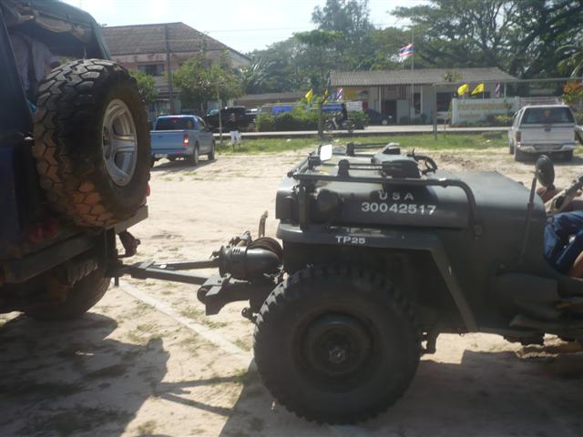 ขอบคุณ คุณเอก ดอนตูมและคุณบิ๊ก ตาปี (คต.ที่4วันเด็กปี่นี้หรือเปล่าครับ ผมว่าเด็กคงอยากมีจิ๊ปเหมือนผมตอนเป็นเด็กเห็นแล้วชอบถ้ามีโอกาศต้องมีให้ได้)ผมอยากจะแก้ไขให้ลากได้เหมือนcj5ของผมอีกคันที่ไม่ต้องทำอะไรเอาสามเหลี่ยมไปเกี่ยวคันหน้าเสียบกุญแจคาไว้ เลี่ยวกลับรถก้ไม่มีปัญหา ผมไม่แน่ใจว่าระบบการทำงานของj53กับcj5เวลาที่ลากต่างกันหรือเปล่า ผมได้มีโอกาศพูดคุยกับพี่ที่ขายอุปกรณ์เดินป่าที่กาญจนบุรีที่เขามี6ล้อทหารและจิ๊ปอีก3คันขับจากอุบลๆมาคนเดียวเกี่ยวท้ายกันมาไม่ต้องไปทำอะไรแต่เป็นcj(หน้ากบ)ทั้งหมด ผมขอข้อมูลผู้ที่ทราบj53 ตอนที่ไปลากที่พิจิตรเข้าใจว่าจะเหมือนcj5พอมาถึ่งที่เลี่ยว90องศาล้อตาย ให้เมียไปประคองพวงมาลัยก็ไม่ยอมให้ขับรถก็บอกไม่เคยขับพ่วง เกือบฝากไว้ข้างทางแล้วต้องบอกว่าต้องให้ลูกน้องขับรถจากนครปฐมรออีก4ชม.หรือจะลองขับไปก่อน พอขับได้ระยะหนึ่งต้องบอกว่ามีอะไรคาใจไว้เคลือร์วันหน้า คันหน้าพ้นหลังไม่พ้นตายทั้งคู่เพราะจับแต่พวงมาลัยอย่างเดียวไม่มีเบรค จากพิจิตรมานครปฐมใช้เวลา4ชั่วโมงครึ่ง ต้องให้มาถึ่งก่อนมืดเมียขับมา100-140เมียเหงือออกที่มือตลอด4ชีวิตจะมาตายเพราะจิ๊ปยอมครั้งเดียว