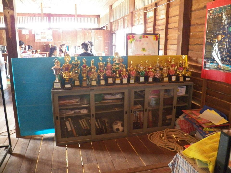ถ้วยชนะเลิศที่ครูรุ่นก่อนทำผลงานเอาไว้ชนะทุกประเภทในอำเภอภูผาม่าน นักเรียนอ่านไม่ได้เขียนไม่ออก จบป.6ไปออกกลางคันในชั้นมัธยมศึกษา