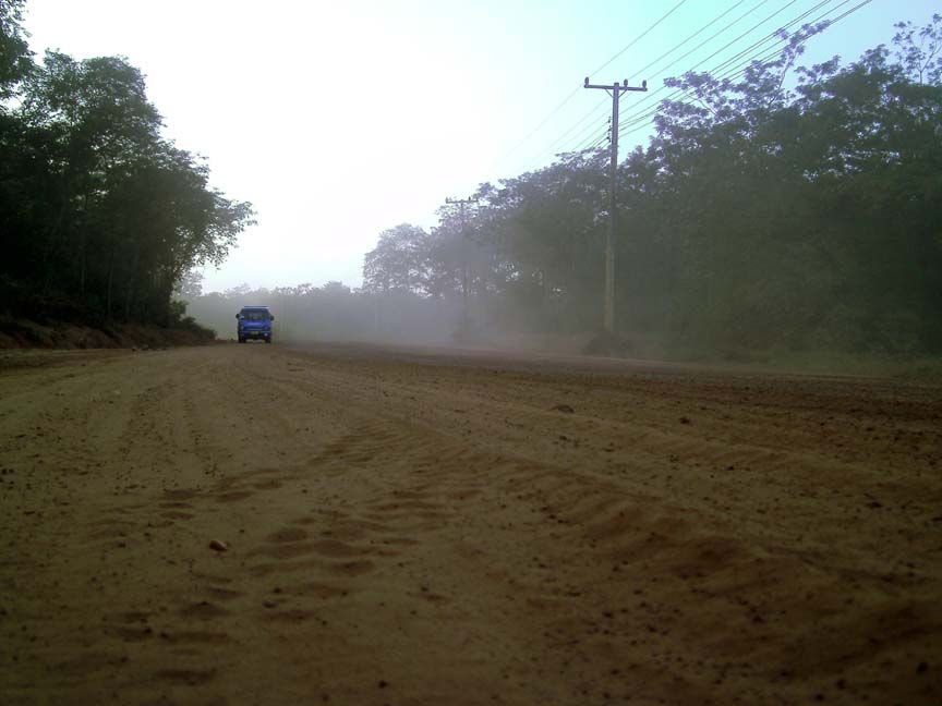 เส้นทางรหว่าง เวียงจันทน์ไป ชะนะคาม บางช่วงอยู่ในการก็สร้าง...