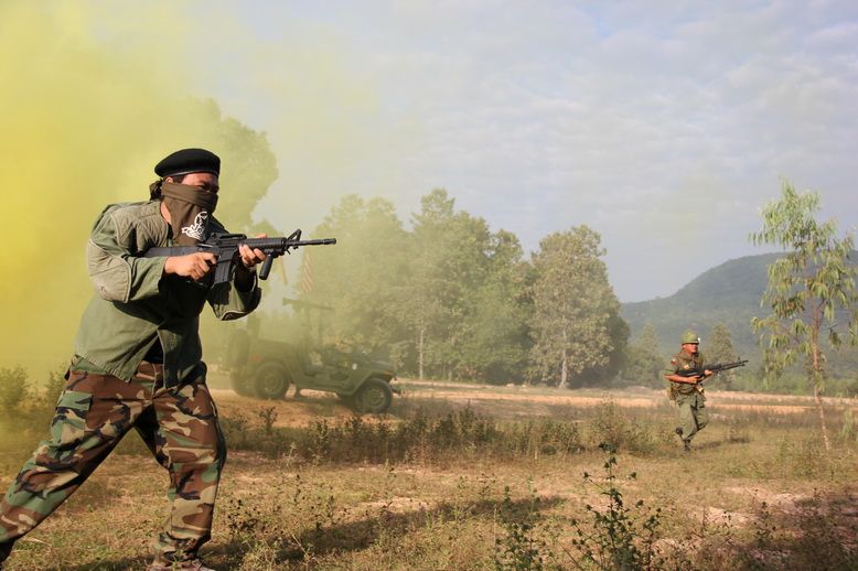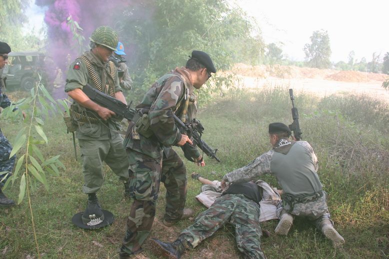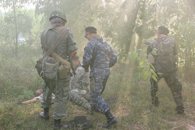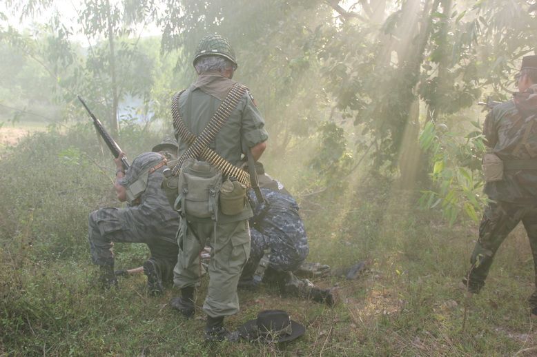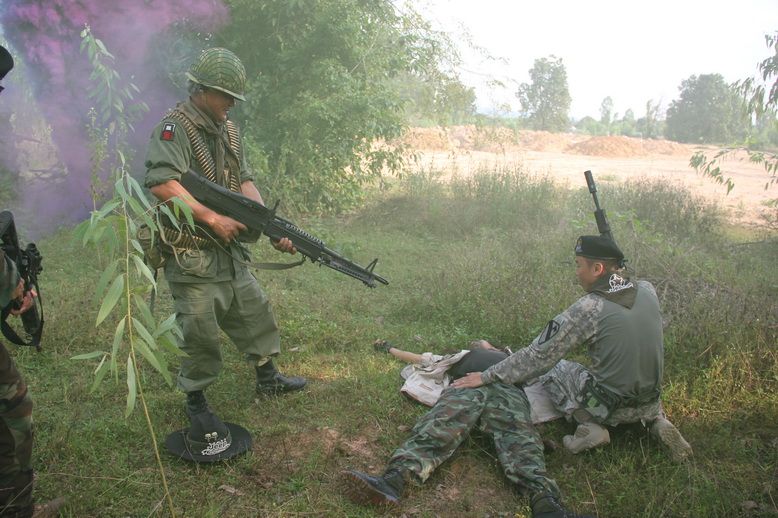 ระหว่างฝ่ายทหารไทยเข้าตลุมบอนต่อที่หมาย ฝ่ายข้าศึกได้ทำการพรางและถอยร่นไปด้วย