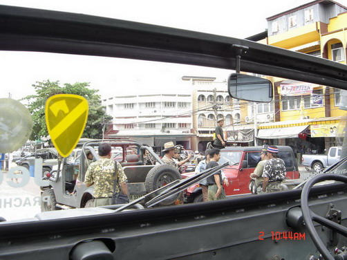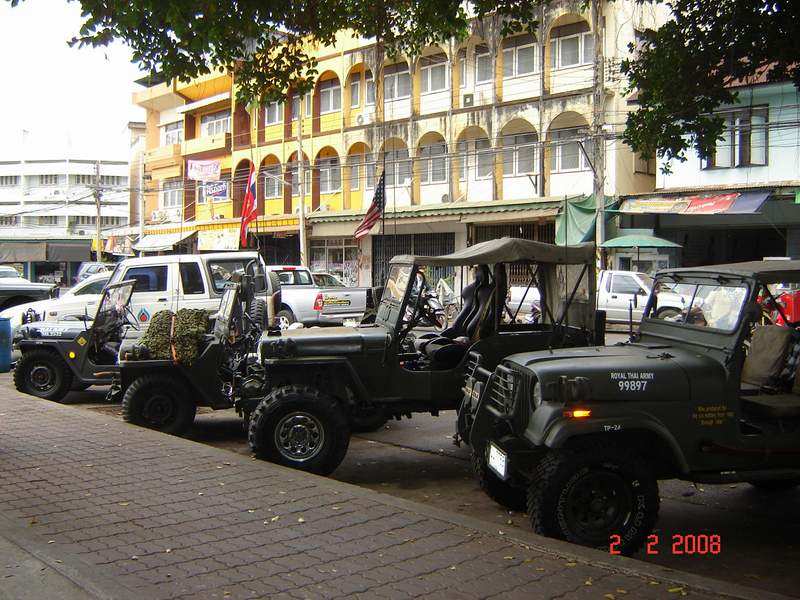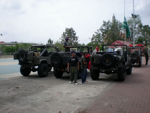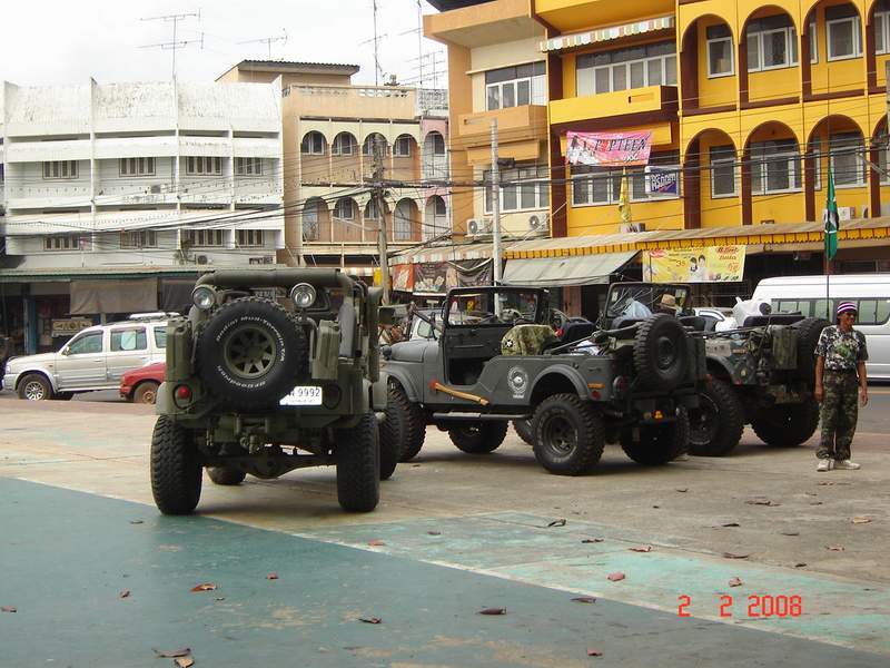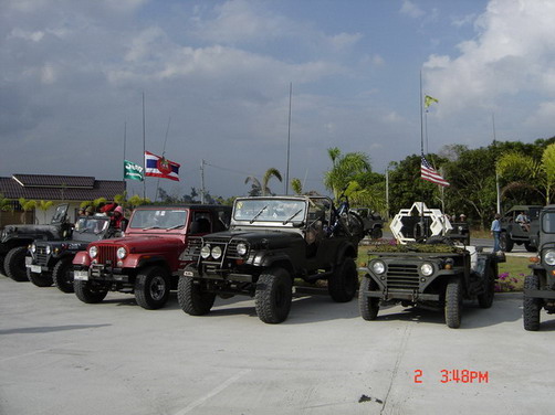 หน้าศาลหลักเมืองปราจีนบุรี จอดพร้อมอยู่ ของ อาจาร์ยไพศาล M38A1, พี่ตนจร จี๊ปตะวันออก m38, คุณกิตติพงษ์ M151A1 mutt,ต่อจากนั้นก็จ่า