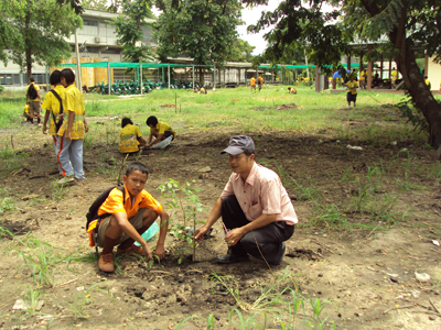 ร่วมปลูกต้นไม้กับเด็ก ๆ ด้วยครับ ลดโลกร้อน แล้วรดน้ำด้วยลีโอ 1 ป๋อง(คนปลูก) ชุ่มคอชื่นใจ