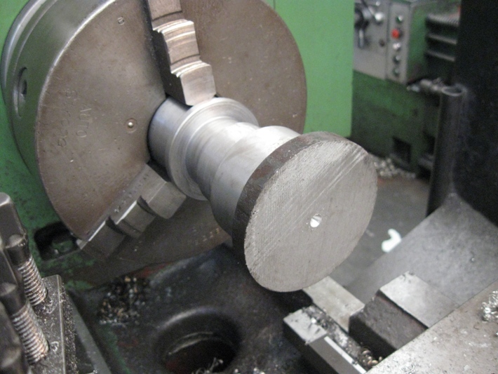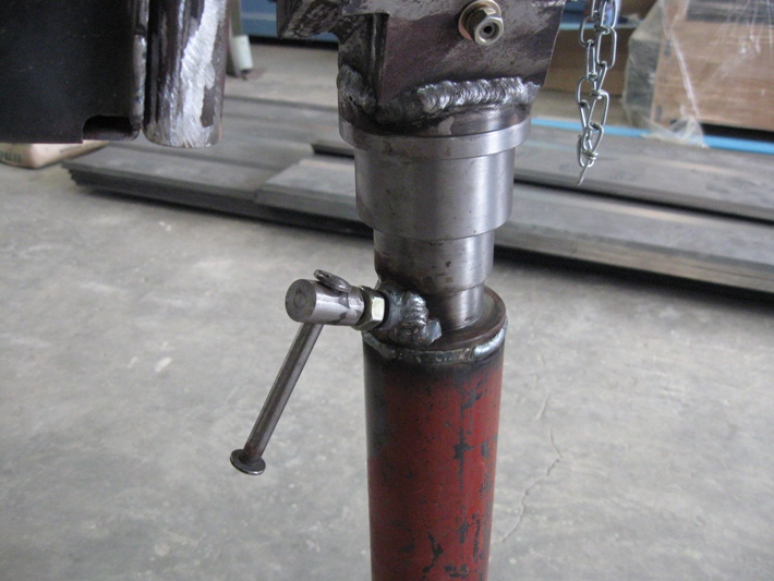 เมื่อสวมเหล็กกลึงด้านบนเสาเรียบร้อยแล้ว...คราวนี้จะต้องเจาะรูที่คอเสาเพื่อใส่น็อตหางปลา..สำหรับไว้ขันล็อคเดือยตัวผู้ของแท่นรองรับปืนกล...องศาต้องได้พอดี มิฉะนั้นจะล็อคไม่ได้ หรือล็อคไม่แน่น แต่ไม่ต้องห่วง..คำนวณไว้เรียบร้อยแล้ว รับรองตรง เป๊ะ