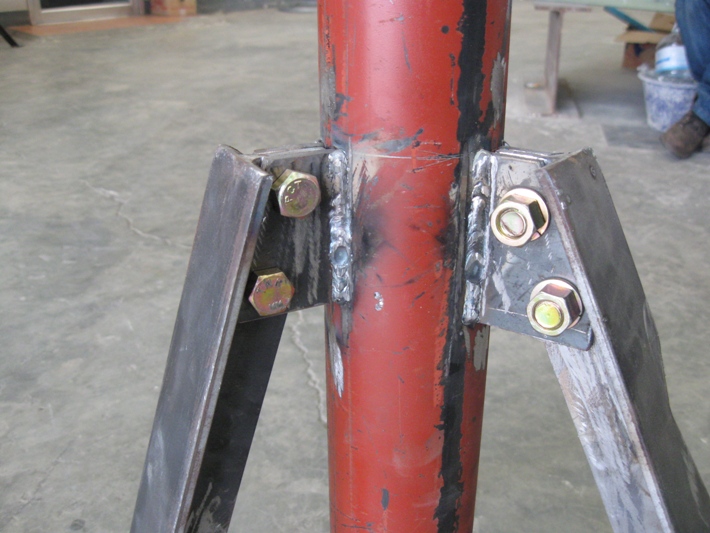 นี้คือเหล็กกลึง..ได้สวมลงด้านบนเสาเรียบร้อยแล้ว พร้อมน็อตหางปลาทำมุมองศาถูกต้องตามสูตรการคำนวณ