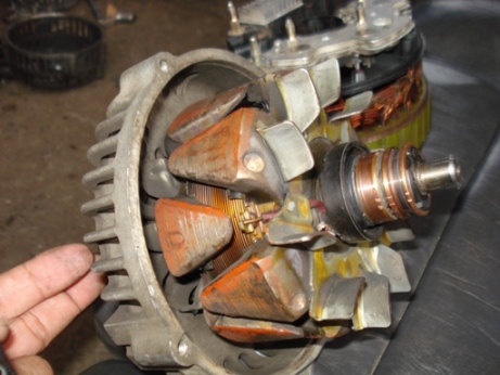 ปัญหาไม่มาปัญญาไม่เกิด..แบบกึ่มๆๆ..ครับ...จัดการยำๆ อุปกรณ์ที่มีประจำบ้าน....โดยเอา Alternator ของที่เสียแล้ว เลือกเอาเฉพาะ ชิ้นของ ARMATURE ที่มี Carbon brush rings ติดดีๆอยู่มาสวมรอย..