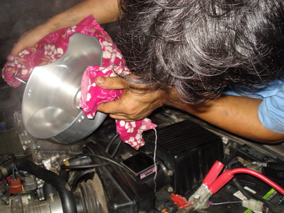 มันเกิดจากที่ประกอบกับเครื่องยนต์แล้ว Run Engine By LPG ในทันที่ขณะเดียวกันก็เติมน้ำกีหม้อน้ำเป็นระยะๆ...น้ำไม่ร้อนซักกะที่......เครื่องดับอีกเมื่อผ่านไป 5 นาที พยายาม start start and start งง งง งงง ครับ เอาไฟมาส่องดู..ฮาเลย..ตู ปื้อจริงๆ