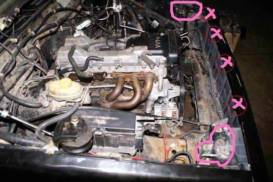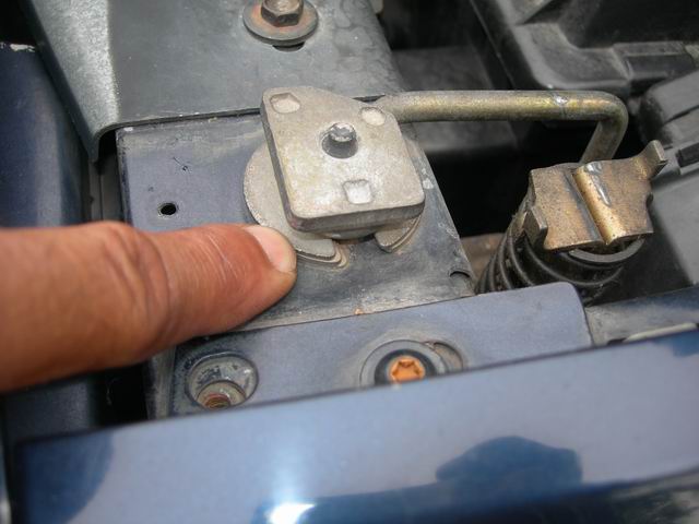 ฝากระโปรงมันเผยอมากกว่าแก้มหน้าใช้หรือเปล่าล่ะครับ อย่าปรับที่กระโปรงครับ ตัวที่ปรับได้คือแก้มหน้าครับ มันจะมีน็อตอยู่สี่ตัว ซึ่งรูมันจะเป็นวงรีทำให้ตัวสกรูสามารถสไลท์ตัวขึ้นลงได้(ตามรูปนะครับ ลองก้มดู) เราก็คลายน็อตทั้งสี่ตัวออกก่อนแล้วเอามือดึงแก้มขั้นมารั้งไว้พร้อมกับขันน็อตให้แน่น ดึงที่ละจุดแล้วขัน(สี่จุด) แล้วลองปิดกระโปรงดู ถ้าไม่พอดีก็คลายแล้วดึงขันใหม่ครับ(ผมเจอบ่อยเพราะถอดหม้อน้ำซ่อมรั่วไป ห้ารอบแล้ว)