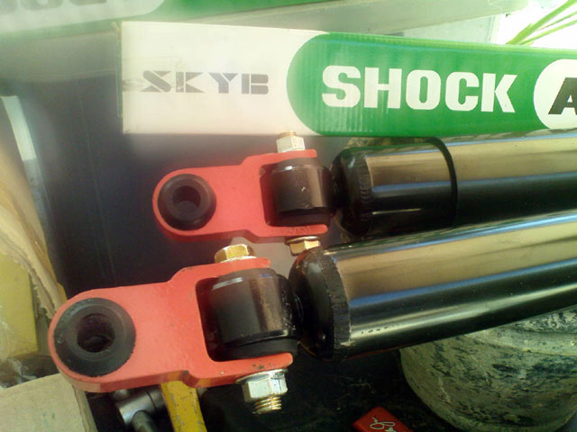 ต่อหูล่างเพิ่มมา 1.5 เกือบ 2 นิ้ว เพื่อรักษาระยะยืด ส่วนหูบนใส่ทุกอย่างตามปกติ ข้อดีของตัวต่อหูโช๊ค นอกจากจะแก้ไขเรื่องระยะแล้วยังแก้ไขเรื่องบูทหูโช๊คที่ชอบงัดเสียรูป ฉีกขาด อันเนื่องมาจากการยกรถแล้วแกนรับหูโช๊คไม่อยู่ในระนาบเดิม แกนด้านซ้ายปลายจะก้มลง แกนด้านขวาปลายจะเชิดขึ้น