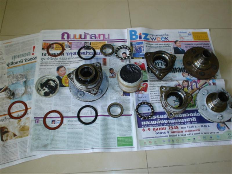 อาการมีอยู่ว่า ขับรถออกจากบ้านได้ยินเสียงดังที่ล้อหน้าขวา เป็นจังหวะ ดังก๊อกๆ เลยไม่กล้าขับต่อ ถอยหลังเข้าบ้านแต่กลับไม่มีเสียงดัง ต่อมาทดลองยกล้อหน้าขวาขึ้นแล้วหมุนไปทิศทางเดินหน้ามีอาการติดเป็นช่วงๆ เหมือนเฟืองขบกัน หมุนถอยหลังไม่ติดปกติ ต่อมาทดลองยกล้อด้านซ้ายบ้าง หมุนเดินหน้าและถอยหลังปกติไม่มีการติด ก็เลยทดลองถอดเพลากลางออกแล้วหมุนล้อหน้าขวาใหม่ก็ยังมีอาการติดอยู่แต่น้อยกว่าที่ยังไม่ได้ถอด ทดลองขับก้ยังมีเสียงดังเป็นช่วงๆเหมือนเดิม รบกวนหน่อยครับ ขอบคุณล่วงหน้าครับ