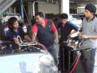 มีอีกวิธี ถอดกล่องหม้อกรองอากาศออก(ที่ต้องถอดเพราะจะทำงานสดวกครับ) แล้วถอดท่อน้ำล่างด้านติดหม้อน้ำถอดให้น้ำไหลออกรอบหนึ่งแล้วเสียบกลับไม่ต้องขันแน่น เปิดฝาหม้อน้ำใสน้ำให้เต็ม ติดเครื่องจนความร้อนขึ้นเต็มที่สักพัก5-10 นาที ดับเครื่องดึงท่อน้ำออก ทำซ้ำๆสังสองหนหรือมากเท่าที่ต้องการ ใส่ท่อกลับขันท่อรัดให้แน่นเติมน้ำยาหม้อน้ำที่มีสารEthelene glycol ซื้อเป้นแกลลอนของโตโยต้าหรือยี่ห้ออื่นๆ ใส่เต็มเลยหรือเติมน้ำกรอง/น้ำกลั่นยิ่งดีให้เต็ม รอจนฟองอากาศออกหมดแล้วปิดฝาหม้อน้ำ เป็นอันเสร็จเรา