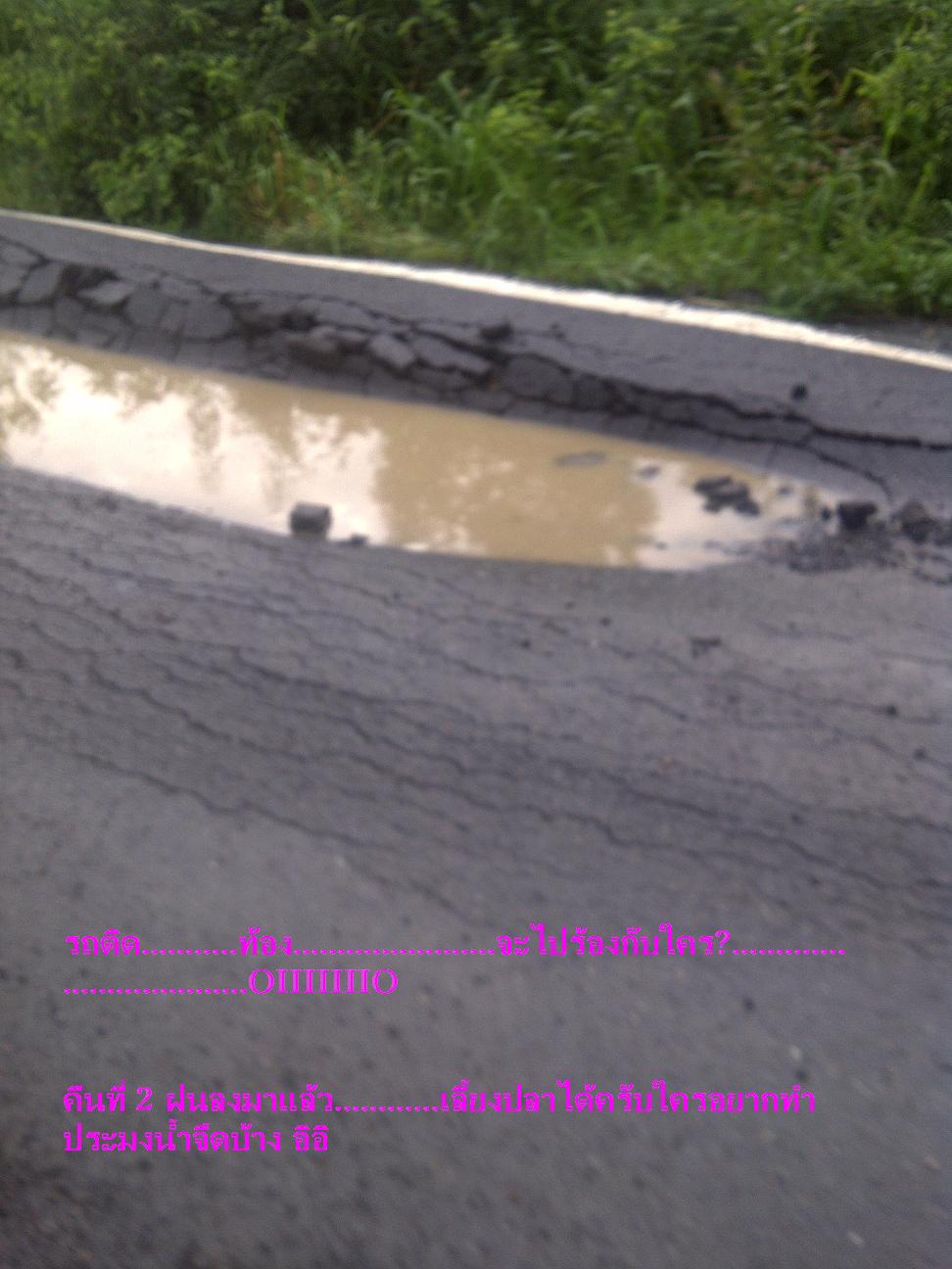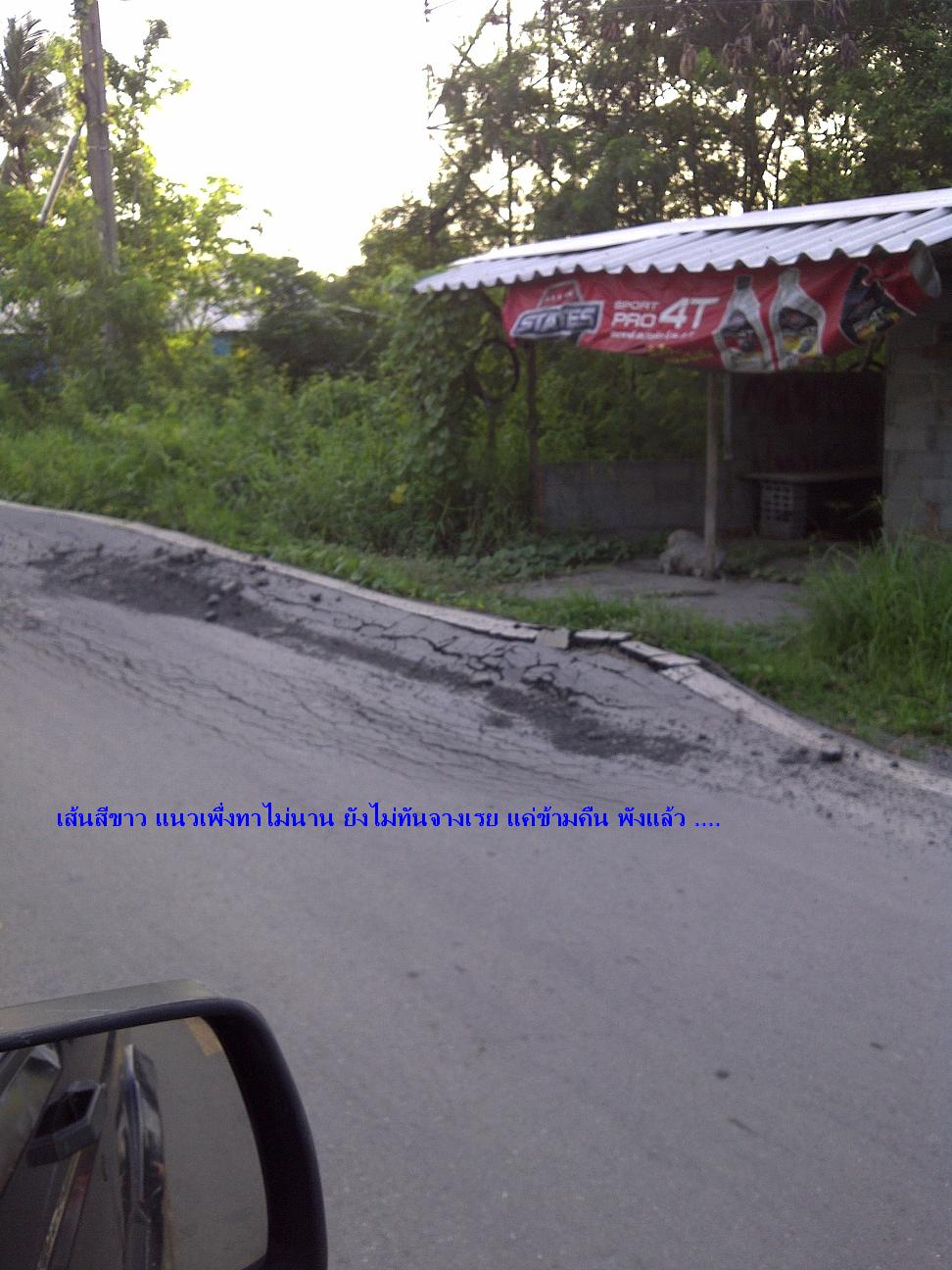 หรือถนนไม่ดี...เพื่งติดป้ายถนนสีขาวเมื่อไม่นาน พังแล้ว.....555
