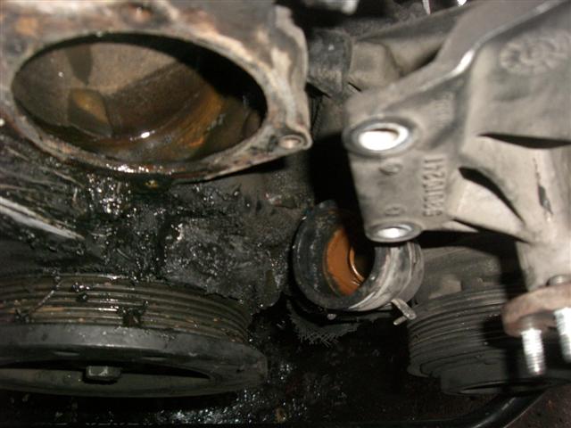 เรื่องมีอยู่ว่า หม้อน้ำเก่าหลังจากที่ใช้มานานพอสมควรมันก็ถึงเวลาที่มันจะรั่ว และต้องเปลี่ยนใหม่ ผมจึงเลือกที่จะหาหม้อน้ำเก่าจากหัวตัดที่มี post ขายใน web มากมาย พอได้มาก็ทำการ Check รั่วก่อนจะทำการใส่เข้าไปใหม่ ผลไม่รั่วครับจึงดำเนินการใส่ติดตั้งท่อน้ำ ท่อน้ำมันเข้าไปจนเสร็จเรียบร้อยแล้วก็ถึงขั้นตอนการไล่น้ำในระบบ แรก ๆ ก็ดีอยู่ ครับ แต่พอเครื่องเริ่มร้อน วาล์วน้ำเริ่มเปิดได้เรื่องเลยครับ น้ำมันเกียร์ที่ต่อผ่านเข้าไปในหม้อน้ำรั่ว น้ำมันเกียร์ทะลักออกที่ฝาหม้อน้ำปิดเครื่องแทบไม่ทัน สุดท้ายโชคไม่เข้าข้างน้ำเข้าห้องเกียร์ครับต้องล้างเกียร์หมดน้ำมันเกียร์สำหรับถ่ายเข้า ถ่ายออก 15 ลิตรเสียเงินเพิ่มอีก 3000 กว่าอีก ตอนนี้ก็เลยแก้ปัญหาโดยการตัดต่อท่อน้ำมันเกียร์ใหม่ไม่เข้าหม้อน้ำแล้ว ผ่านแต่ Oil Cooler แล้ววนเข้าเกียร์เลยไม่รู้มีข้อเสียหรือเปล่า แต่ข้อดีแน่ ๆ คือน้ำในหม้อน้ำหมดโอกาสเข้าห้องเกียร์อีกต่อไป
