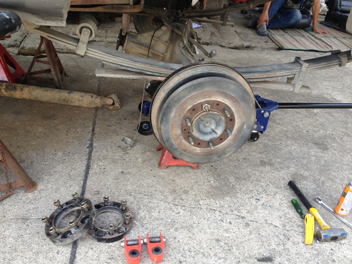 เมื่อเอาของเดิมออกแล้ว นำคานหลัง jeep ที่จัดเตรียมวางแผนการดีแล้ว