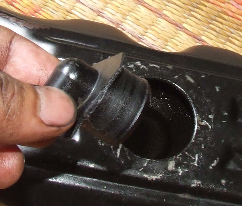 เอาคัทเตอร์ตัดฐานยางออกก่อนสิคับ แล้วค่อย ๆ เอาออกมา