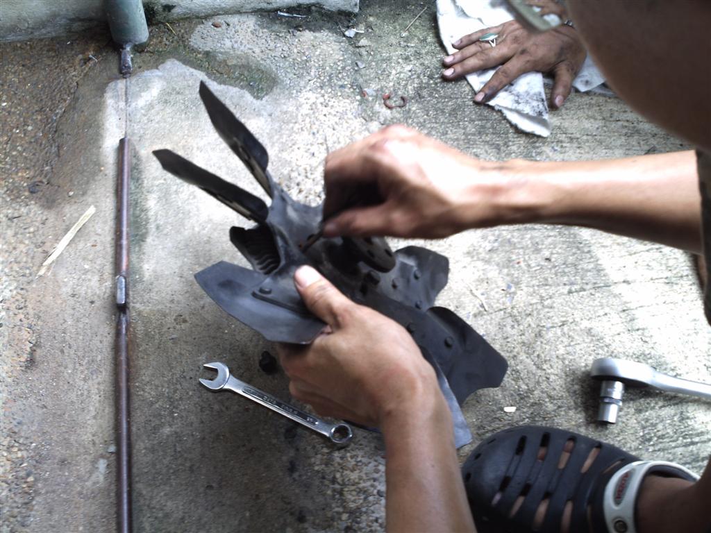 ถอดพัดลมหน้าเครื่องมาอัดน้ำยา.พึ่งจะทำเมื่อวันเสาร์อาทิตย์เจอเลย 555.....ได้ความรู้เพิ่มอีกแล้ว......ต้องขอบคุณพี่มีนหรือนายบ้านนอกจริงๆครับ