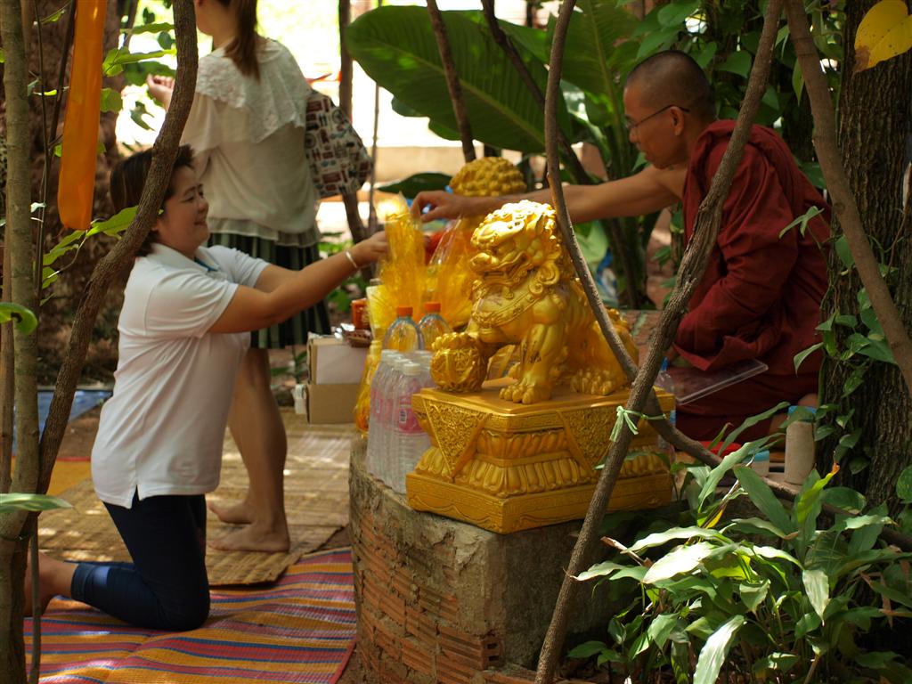 ใช้เวลาไม่นานนักก็มาถึงวัด มีข่าวลือไม่เป็นที่แน่ชัดนะครับผม ว่าขาไปวิ่งเลยทางเข้าวัดไปหลายกิโลพอเลี้ยวกลับก็เลยอีกนิดหน่อย พอถวายเทียนพรรษาเสร็จขากลับวิ่งผิดทางอีก พอกินข้าวเสร็จสรรพก็ไปไหว้ย่าโมแล้วจะไปกินกุ้งกันก็พาเข้าซอยตันอีก เฮ้อเหนื่อยแทน ย้ำมันเป็นข่าวลือนะครับผม