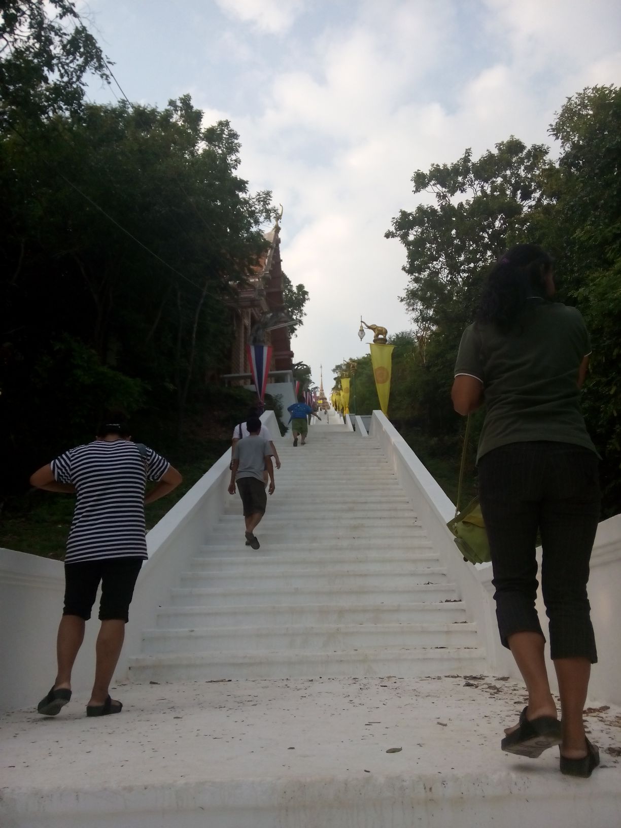 ขึ้นยังไม่ถึงครึ่งทาง พี่สาวกับหลานๆ ไปถึงด้านบนละ เก่งกันจริงๆ แรงดีขาดี มีชัยไปกว่าครึ่ง เหลือบไปเห็นหลวงพ่อ มองๆเป็นไนๆ เหมือนท่านจะบอกว่า ไม่ไหวก็พักเถอะโยม จบกัน นั่งหอบเป็นหมาหอบแดดเลย