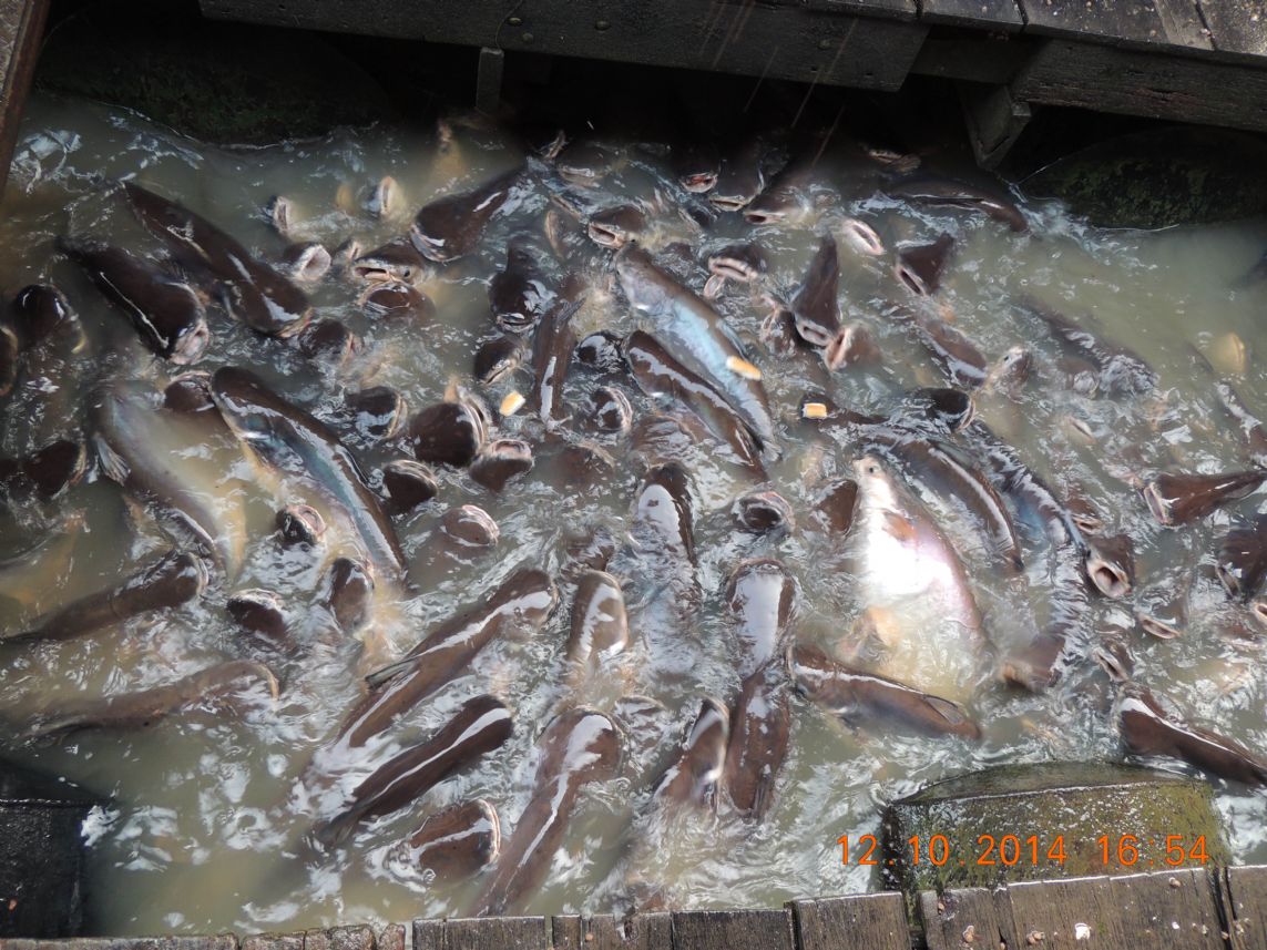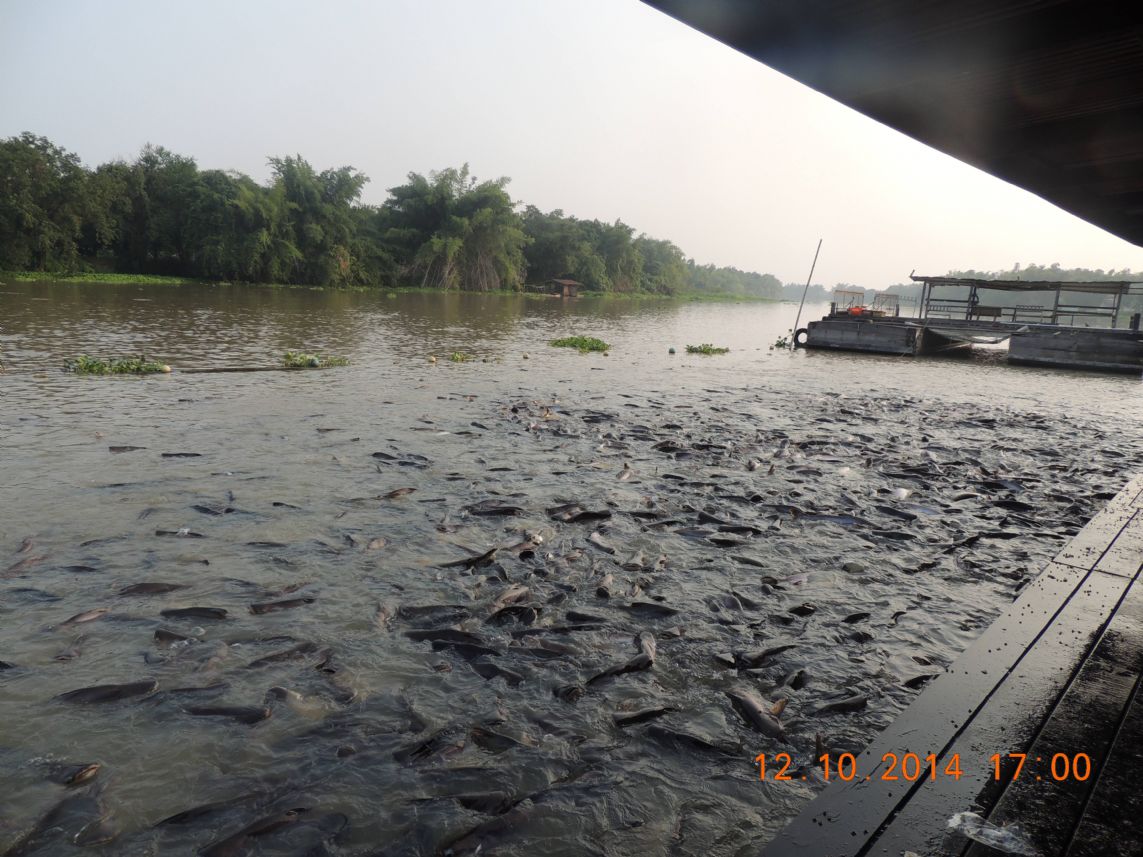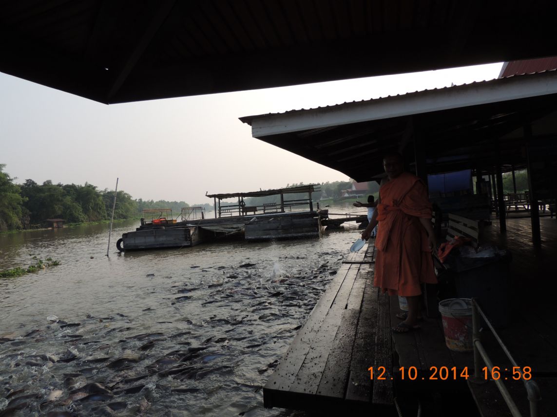 ต่อไปตรงนี้ค่ะเป็นจุดเลี้ยงปลาแม่น้ำที่สุดยอดมาก ปลาสวายเยอะมากๆ เกยหัวกันขึ้นมาแย่งอาหารกินเลย ตรงนี้พวกเราสนุกกันมาก ได้บุญด้วย