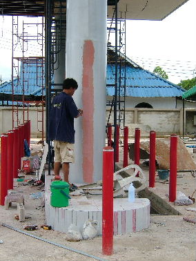 นั่งมองต้นเสามาหลายวันครับ ช่างที่ทำบอกว่ายังไม่ถูกใจขอแบบเนียนกว่านี้อีก เลยต้องจัดการโป้วสีซะหน่อย