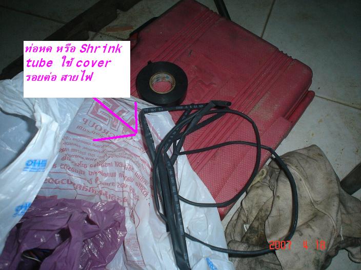 ใช้ shrink tube แล้วพันด้วย เทปพันสายไฟอีกครั้งหนึ่ง