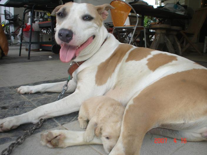 cindy ที่ เป็น พี่เลี้ยง ให้ กับ puppy มะหมา 4 ขา ลูกๆ ของ แม่ มะเฟือง