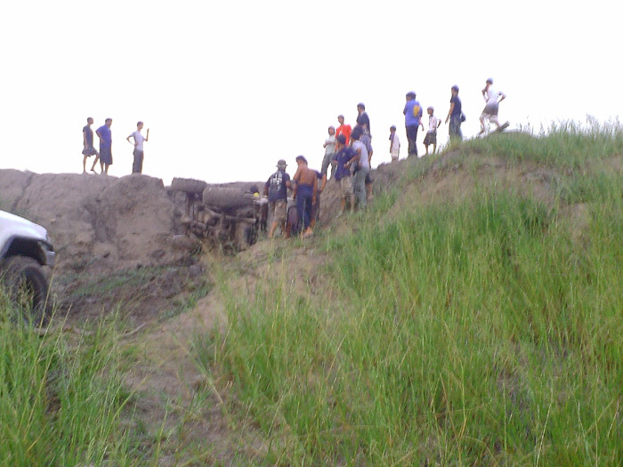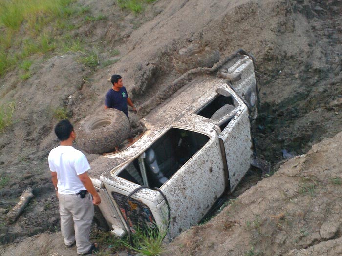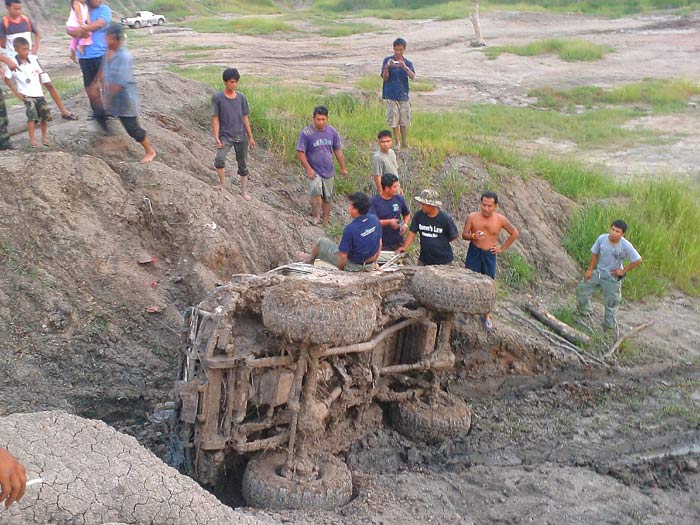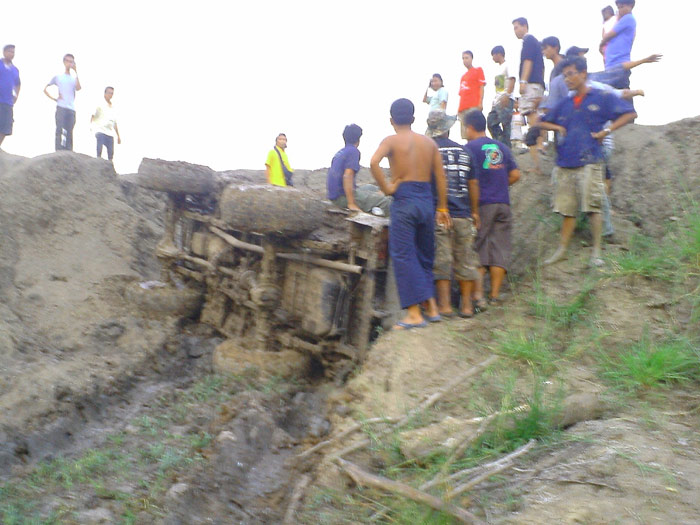 ทุกๆวิ่งกันจ้าระหวั่น...รีบเข้าไปช่วยเหลือ...โชคดีที่คนขับไม่เป็นอะไรมาก....ตอนแรกผมก็ยืนดูขณะที่รถเริ่มปีนเนินขึ้นไป....ในใจก็คิดว่า...ทางตรงนั้นมันขาดนี่หว่า...ทำไมเขามุ่งหน้าไปเฉยเลย....และได้สอบถามคนขับ...เขาก็บอกว่าเห็นว่าทางมันขาดอยู่....คราวก่อนยังหลบขึ้นได้เลย...แต่มาเที่ยวนี้ทำไม่มันร่วง...ก็ไม่รู้....อาจจะมาจากสาเหตุที่ธรรมชาติมันเปลี่ยนแปลงไป...คราวก่อนกับคราวนี้มันเปลี่ยนแปลงไปแล้ว...ครับ....
