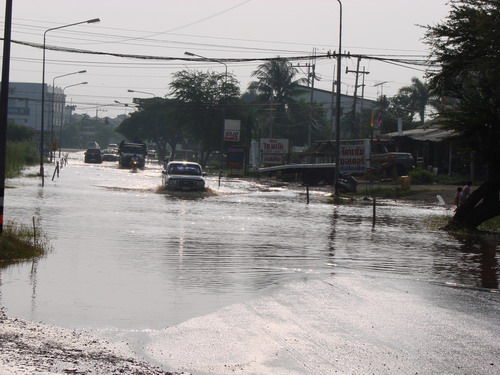 น้ำท่วม ถนน บริเวณ บขส.ใหม่ที่ตัวเมืองพิมาย ยังกะอยู่ กทม เลย