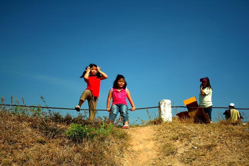 พี่วัฒน์ทดสอบ...ความฟิต...เดินขึ้นไปบนสันเขื่อน...ขอพักครึ่งทางก่อนเด้อ...