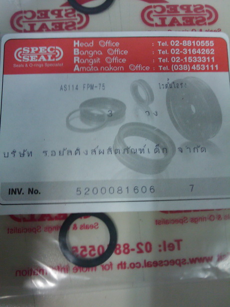 วัฒน์ ของมาแล้วสั่งมาจาก Spec Seal เลยเป็น O-ring ไวตั้นทนน้ำมันเบ็นซิน ตัวใหญ่เบอร์ AS114 FPM-75