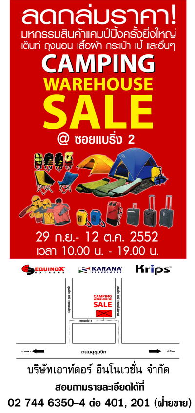 - ฝากแจ้งข่าวประชาสัมพันธ์ Camping Warehouse Sale ด้วยคะ