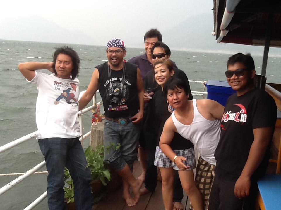 หลังจากจอดรถที่โรงจอดรถของพนักงานการไฟฟ้าที่มีหลังคาอย่างดีแล้ว ก็เก็บของสัมภาระเพื่อการดื่มและอาบน้ำ รอให้รถบริการของแพมารับ พวกที่เหลือก็ถ่ายรูปเป็นที่ระลึกกัน(อยู่ในกล้องใครบ้างไม่รู้ต้องรอดูต่อไปนะครับ)....หลังจากรถมารับและพาไปลงแพ ต้องบอกว่าแพที่เราจองใหญ่มากๆนอนกันได้เป็น50กว่าคนพูกรวมกันเป็นสองแพแต่คณะเรามีกันเต็มที่ประมาณ20กว่าคน แพเลยดูใหญ่จริง แยกออกเป็นสองแพคือแพนอนแบ่งเป็นห้องๆ20ห้องนอนและแพสันทนาการ คาราโอเกะ และโต๊ะอาหารอีกหนึ่งแพ.....แพถูกลากออกจากฝั่งสู่จุดหมาย.....อยากอาบน้ำอย่างมาก อากาศร้อนโคตร ๆ