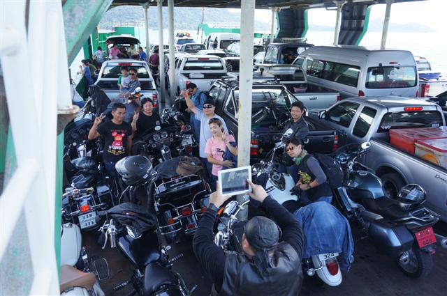 ตัดภาพมาที่ท่าเรือเฟอร์รี่ ลงเรือกันทั้งคนทั้งรถ