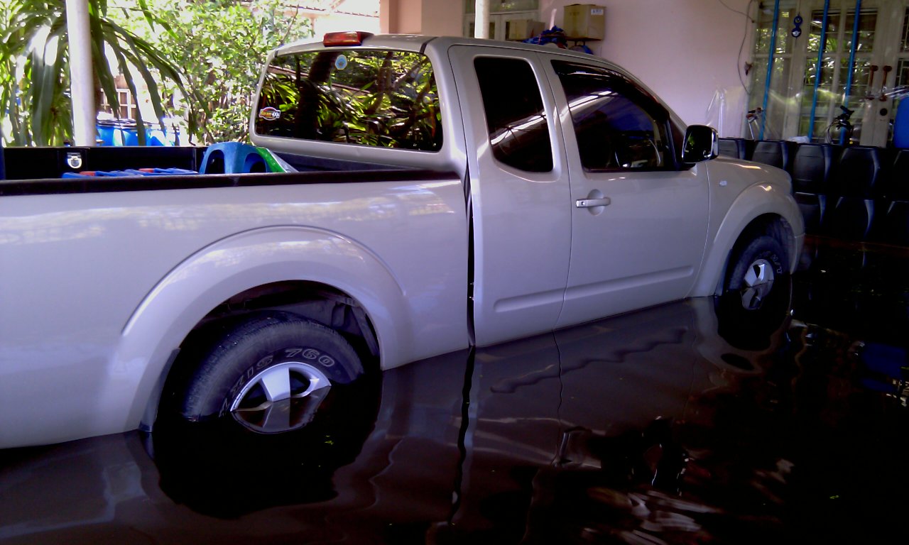 น้ำเข้าบ้านเมื่อวันที่ 22 ตค 54 ครับพี่น้อง หลังจากพยายามต่อสู้กับน้ำทุกวิถีทาง ทั้งอุด ทั้งกั้น ทั้งเตรียมการที่จะอยู่กับมัน แต่สุดท้าย เราก็ไม่ชนะมันครับตอนนี้อพยบครอบครัวมาอยู่โคราชชั่วคราว นาวาร่าในรูปเอาออกไม่ได้ครับ ส่วนยานแดร็ก ก่อนหน้านี้เอาไปสุพรรณบุรีเรียบร้อยแล้ว เจอกันหลังน้ำลดครับ ให้กำลังใจกับพี่แสบ น้าตี๋ฮูก น้านม น้าภาส น้าโต้น และพี่น้องที่ประสพภัยทุกคนครับ