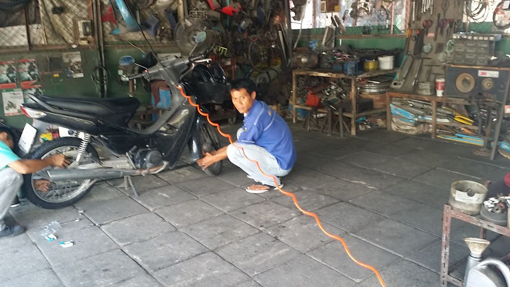 กินกันอิ่มแล้ว ก็แยกย้ายกัน...คุณลุงไปสวนลำไยเพื่อน...ส่วนผมแวะไปหาเพื่อนรักที่นานๆจะได้เจอกันซักที มันไปเรียน มช.แล้วไปได้เมียที่นั่นเลย ทำมาหากินที่นั่นเลย...ร้านมันเป็นร้านปะยางและซ่อมมอไซย์ อยู่หลังมอฯ รับล้างอัดฉีดด้วยนะ ไอ้นี่มัน พอเพียง สมถะ มันบอกว่า มันชอบครับ