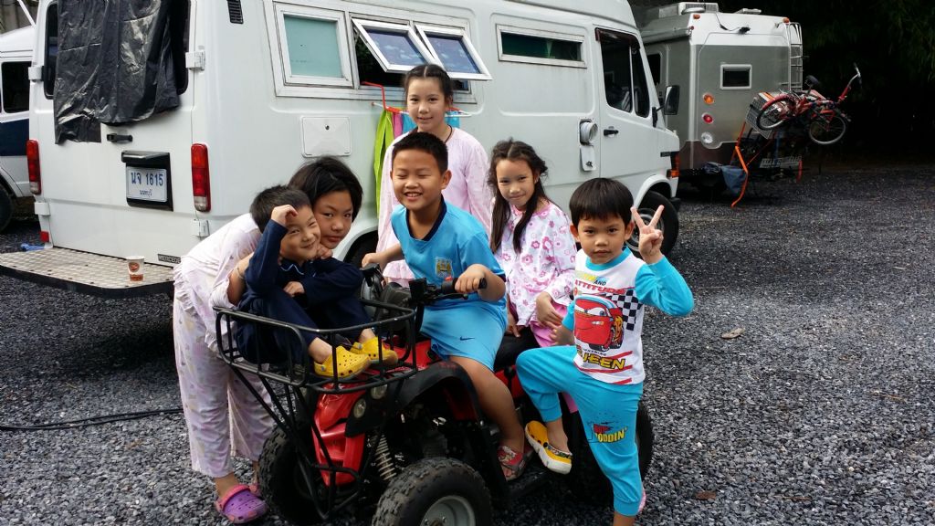 แบ่งหน้าที่กันทำ...เด็กๆหิวข้าวกัน อเล็ก หรือ ที่ผมเรียกติดปากว่า"ไอ้เถ้าแก่ไหหลำ"ตั้งครัวเฉพาะกิจที่ท้ายรถมัน ทำกับข้าวให้เด็กๆกินกัน