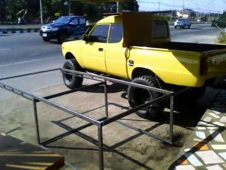 มาถึง คันที่สอง ด้วยความที่ว่า ผมเล่นรถ ซูซูกิ คาริเบียน อยู่แล้วที่ยวอยู่กับกลุ่มซูซูกิ ศรีราชา เวลาไปเที่ยวกับเพื่อนๆซูกิ เจ้าบิ้กเอ็มมอเตอร์โฮม คันแรกนั้น มันแลจาไม่ค่อยเข้ากับ เพื่อนๆเวลาไปทริปกัน เพื่อนซูกิ เขากะต้องเลือกไปที่ที่ รถผมเข้าได้ จาลุยเล็กๆบ้างกะไม่ได้ เลยมีความคิดจาสร้างรถบ้าน ในแบบที่พอจาลุยได้เล็กๆ น้อยๆ แต่พอดีช่วงที่จะเริ่ม โปรเจ็ค 2 นั้น กระแสรถออฟโรด มาแรงมาก ( ช่วงน้ำท่วม) หารถซูราคาเหมาะๆไม่ได้ ดันมาเจอ มาสด้าน้อยคันนี้เข้าราคา สมเหตุ สมผล เครื่อง และช่วงล่างกะของ ซูซูกิ คาริเบียน ด้วย เลย เอากะเอา ลองเอาคันนี้มาทำดู กะดีมีกระบะ แต่ก็ได้อารม ซูกิ คาริเบียน จึงจัดมา สร้างตาม จินตนาการ เหมือนเคย ลองชมกัน พอขำครับ