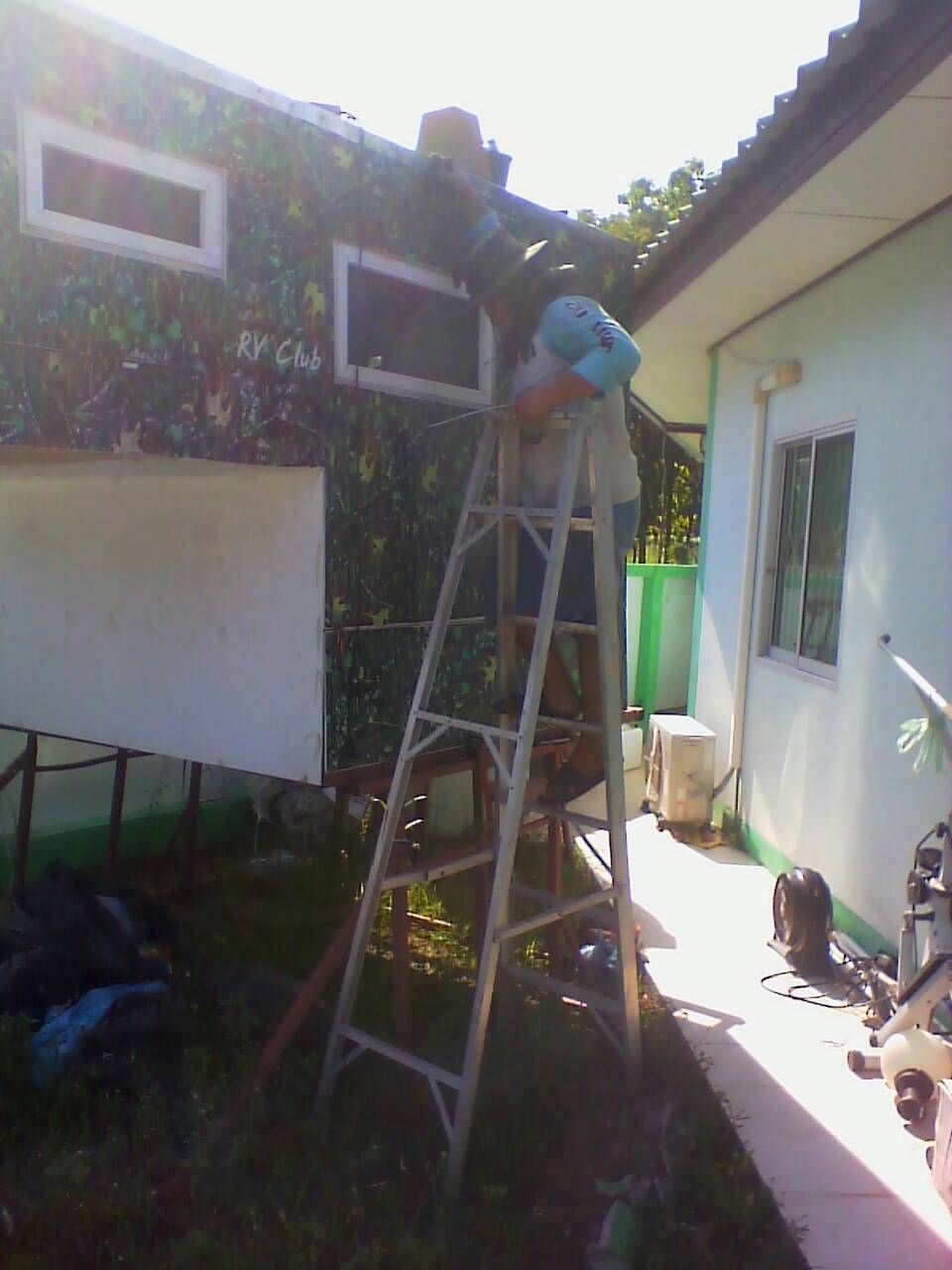 ห่างหายมิได้ขยับมาซะหลายเดือน วันนี้มีเวลา มีงานต้องคิดแก้ไขกันเรื่องหลังคารั่ว จากอายุการใช้งานของแผ่นพลาสวูดที่คิดเอามาใช้ลองทำดู แต่ก็คุ้มแล้วละคับกับการลงทุนตามกำลังที่มี แนวทางการแก้ไขแบบเซ็ปงบประมาณที่สุดที่คิดรได้ตอนนีคือ ใช้แผ่นสังกะสีแผ่นเรียบพับครอบรด้านบนกันทึ้งบานหมดงบกับการแก้ไขครั้งนี้ไปอีก พันกว่าบาท พอรับได้ ลองชมดูคับเผื่อเอาไปปรับใช้ได้