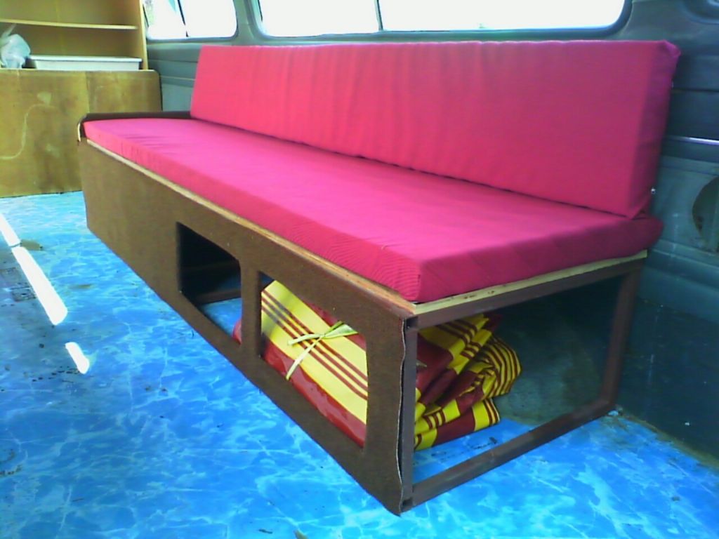 จัดการรื้อเบาะเดิมออกซะ แล้วเริ่มวางตำแหน่งเบาะที่จะทำใหม่ เอาแบบนอนดิ้นกันสบายๆกันเลย