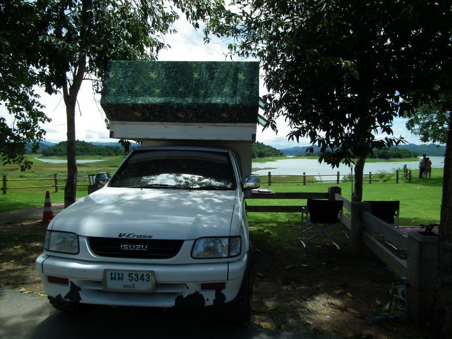 เจอคันนี้ในงาน เอาของมาออกร้าน เห้นล้อเล็กๆ แต่มีตั้ง หกล้อนะ ติดแอร์บ้านไว้ข้างหน้าด้วย