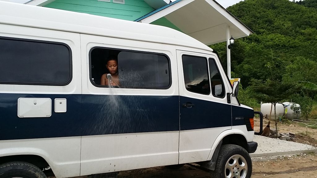 บ้านเพื่อนอยู่กลางหุบเขาเลย...ผมอาศัยจอดนอนหน้าบ้านเพื่อนนี่แหละ ถึงพื้นที่จะเอียงก็ไม่กลัว ใช้แม่แรงปรับระดับรถได้...