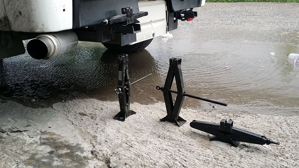 ทดสอบ เอาก้อนรองแล้วยก รถไม่โครงเลย แน่นตึบ ถ้ามีก้อนรองสูงกว่านี้ เปลี่ยนยางได้สบายเลย...ประเด๊วว่างๆ ด้านหน้ารถก็จะทำแบบนี้...