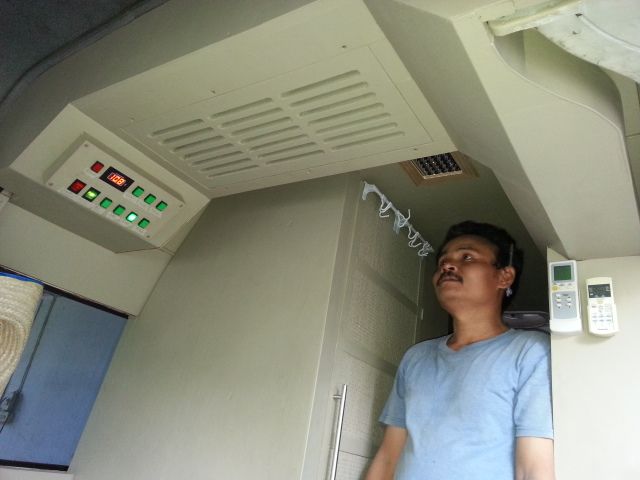 ไฟที่จะเอามาเปิดแอร์บ้านในรถ ผมใช้ไฟที่ต่อจากข้างนอกนะครับเวลาจอดนอน ถ้าไม่มีแหล่งจ่ายไฟจริงๆ ก็ปั่นไฟใช้เองครับ ส่วนเรื่องความเย็น ไม่ต้องพูดถึงครับ ห้องแช่แข็งดีๆนี่เอง555555...18องศาในห้องนอนครับ...ผมใช้รีโมทพัดลมดูดอากาศเป็นตัววัดครับ