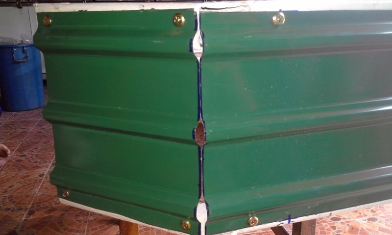 หลังจากกรุสังกะสีบางส่วนแล้ว ได้ยิงซิลิโคน ตามลอนทุกชิ้นที่กรุครับ อัดแบบนี้ไม่น่าจะรั้วนะ