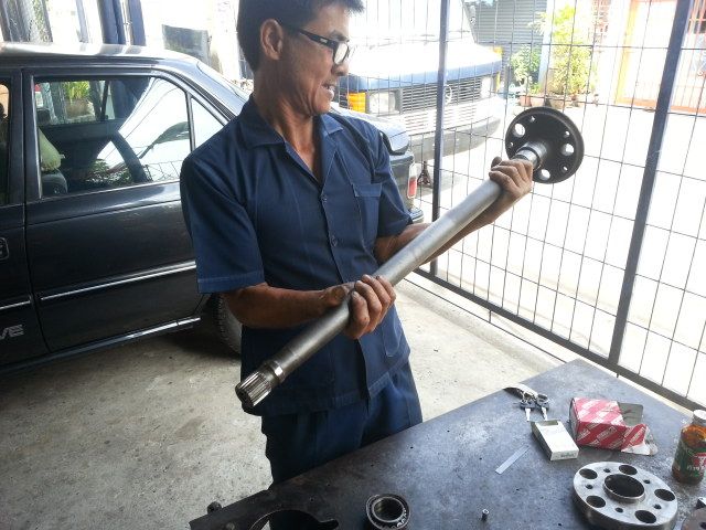 ดอกแรกก็โดนเลย5555...คืองี๊ครับ คือซีลเพลาข้างมันรั่วทั้งสองข้าง เลยให้ลุงแดงรื้อออกมาเปลี่ยน รื้อซีลเพลา ตลับลูกปืนก็ต้องเปลี่ยน ทีนี้พอจะหา ดันหาของไม่ได้ตามร้านทั่วไป กรรมล่ะสิ!!! ต้องเบิกห้างฯอย่างเดียว ห้างฯมีขายเลยครับ แต่ขายยกชุดพร้อมแกนเพลา ข้างละ68,000บาท สองข้างรวมกัน 136,000บาท แม่เจ้า!!!!พระเจ้ากล้วยตากเมืองกำแพง!!! ผมขายหมูสะเต๊ะไม้ละ5บาท แล้วผมต้องปิ้งอีกกี่ไม้เนี่ยถึงหาเงินมาซื้อ555555....แต่ในยามที่ผมกำลังตกทุกข์ได้ยาก ก็มีพระเอกขี่ม้าขาวมาช่วยผม แต่น แตน แต๊รนนนน คุณเถ้าแก่ไหหลำหรือคุณอเล็ก พระเอกในใจผมครับ5555555