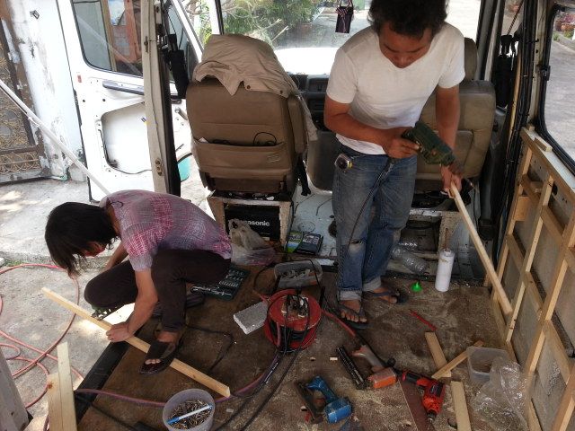 ภายในรถก็ตัดๆซอยๆไม้โครงใส่เข้าไป